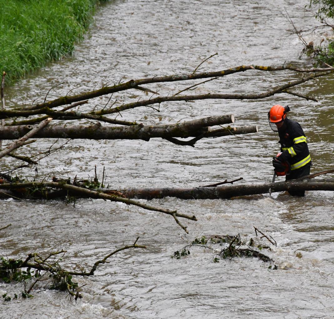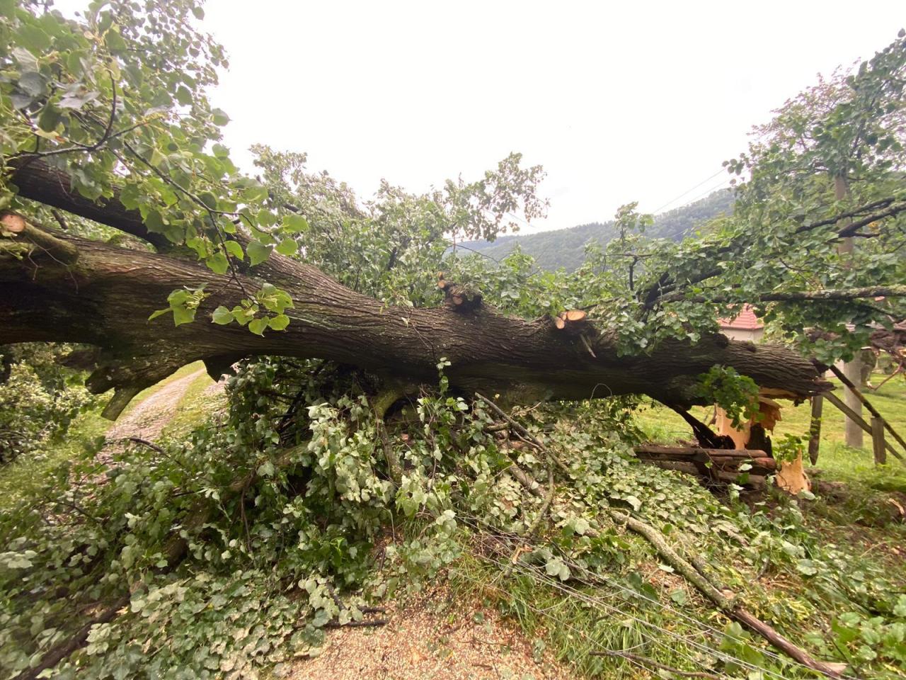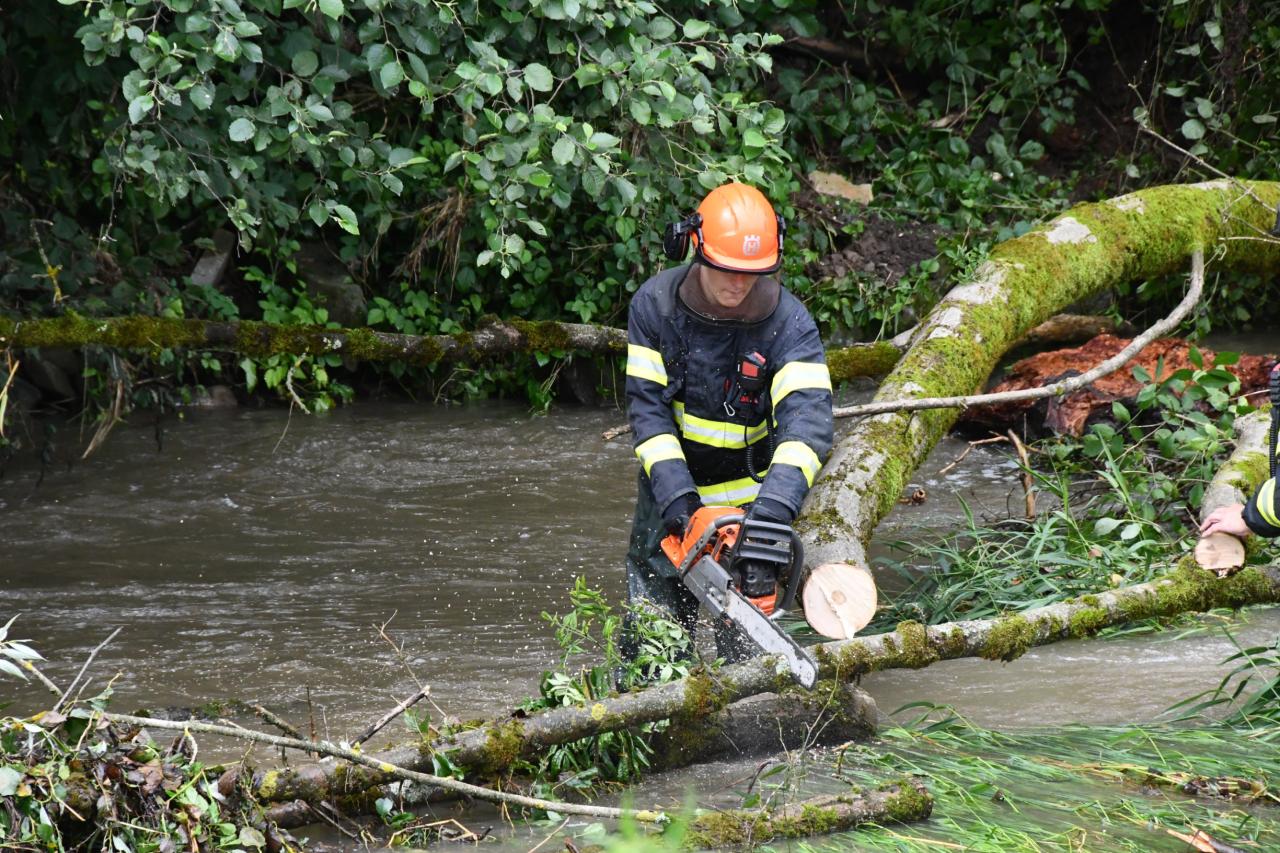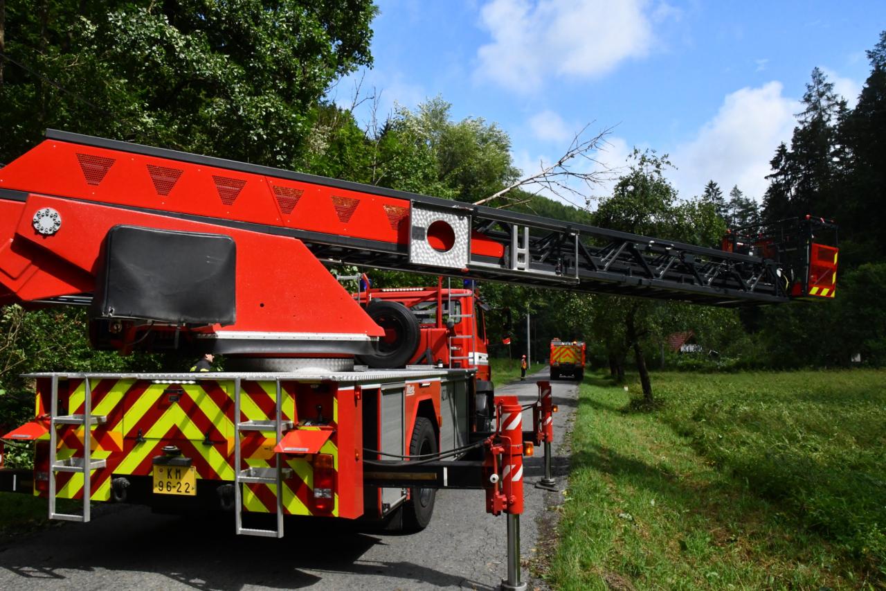 Silné bouřky s vydatným deštěm zasáhly v pátek 12. července ve večerních hodinách naše město. Od večera do sobotního poledne zasahují jednotky dobrovolných hasičů z Brumova společně s profesionálními hasiči z Val. Klobouk u spadlých nebo vyvrácených stromů, které ohrožují bezpečnost obyvatel.