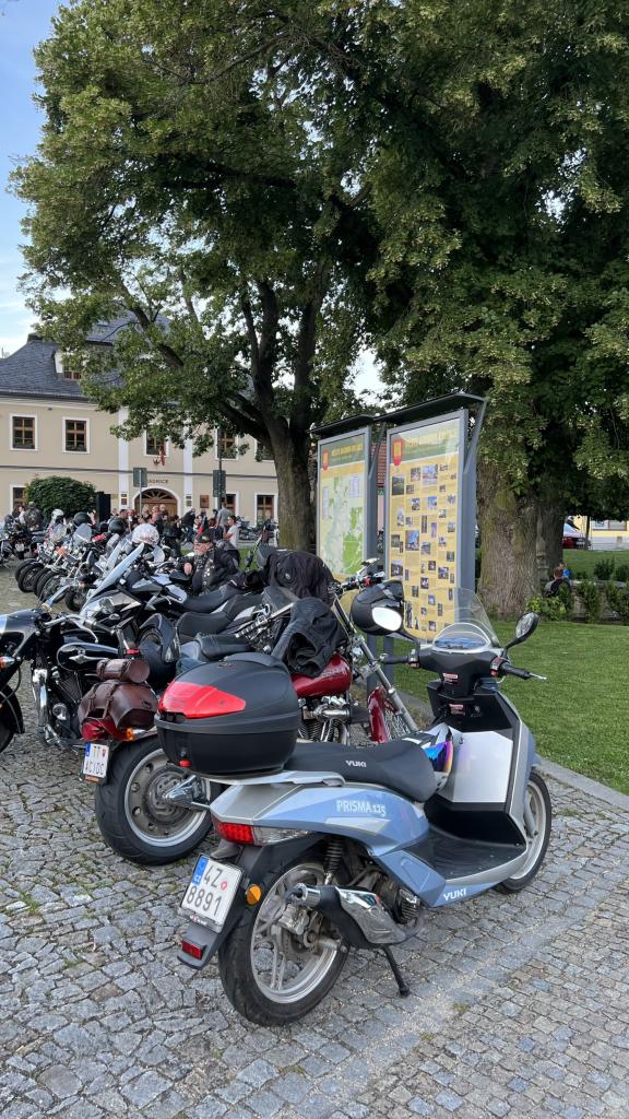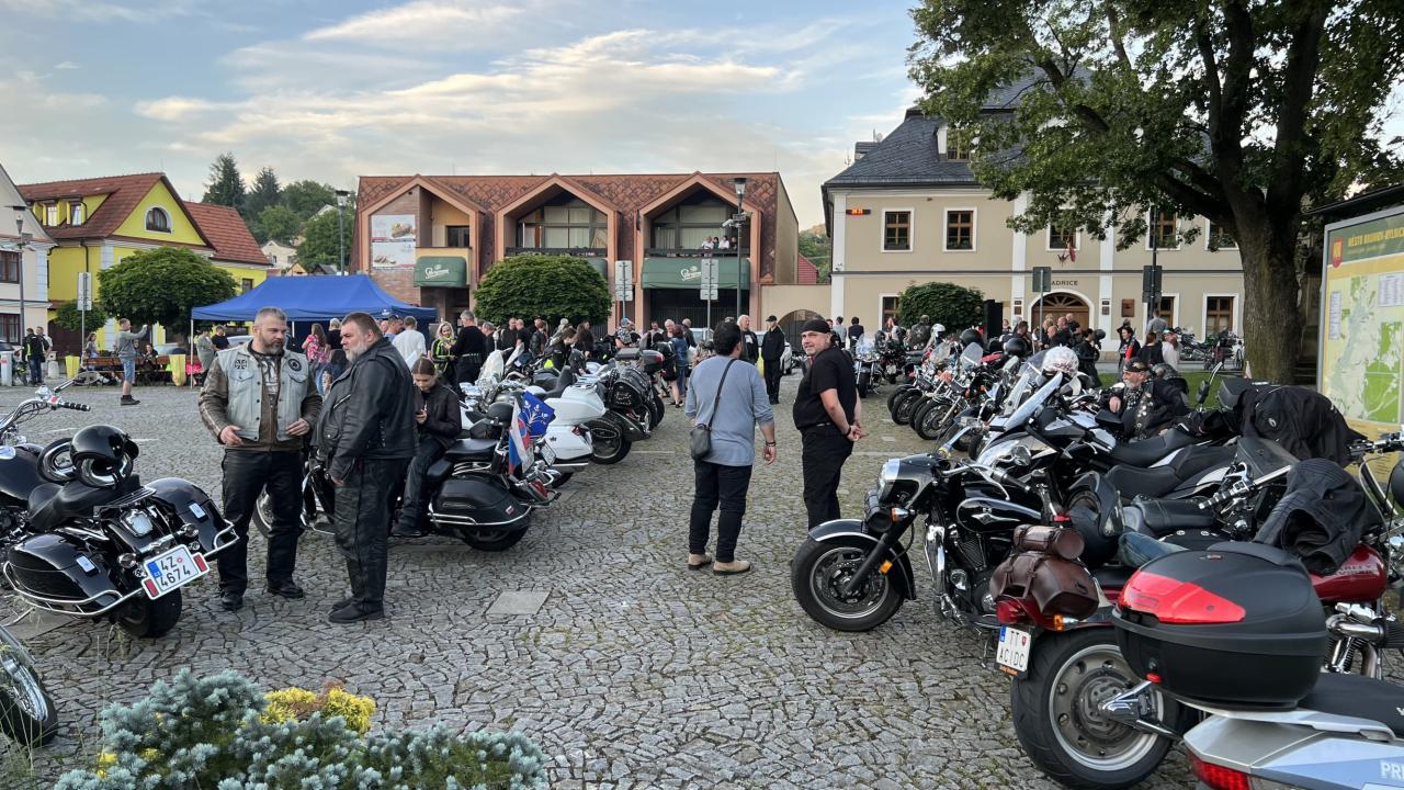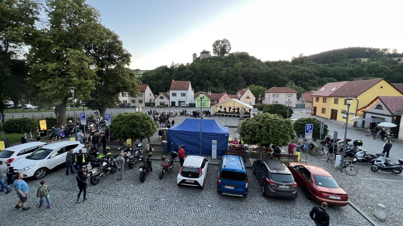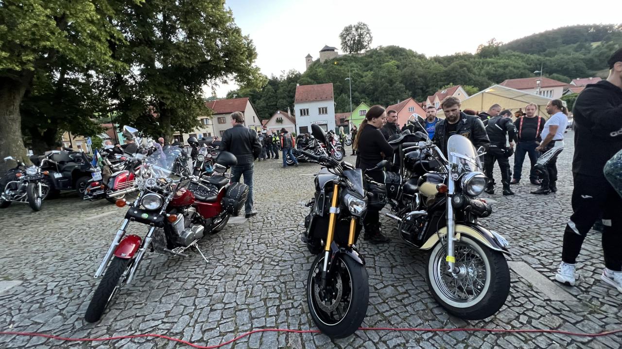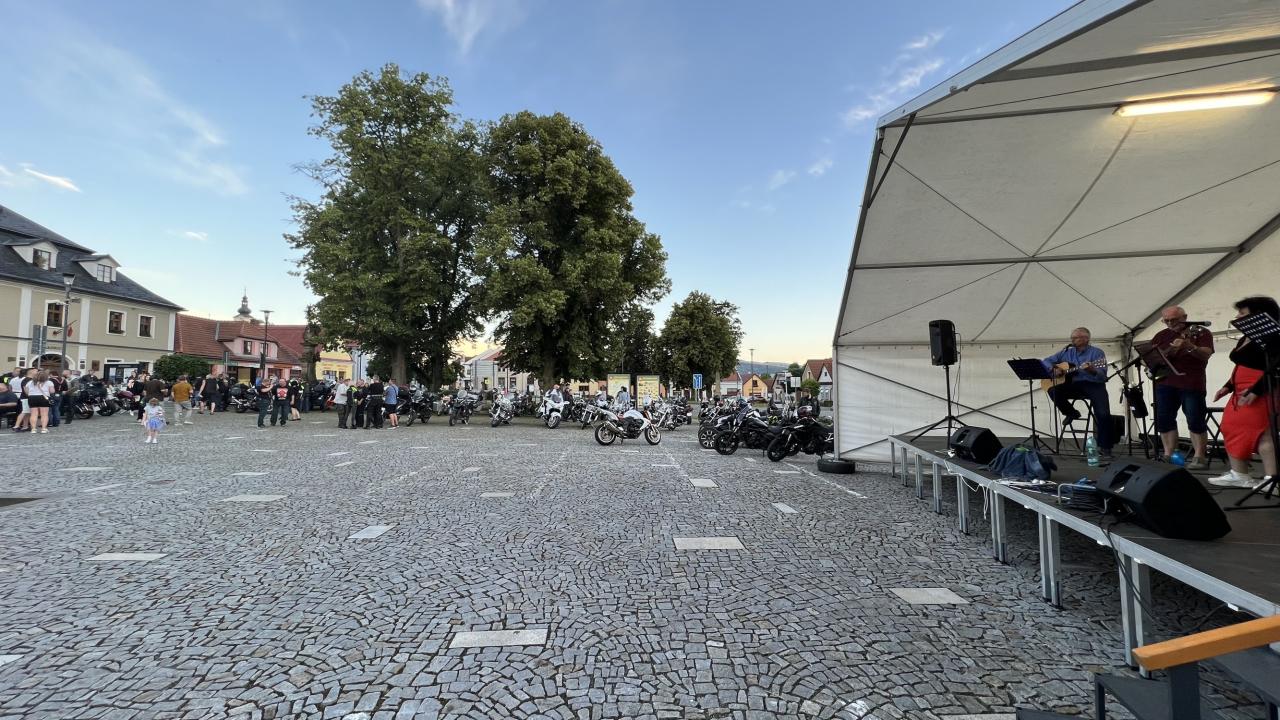 Motosraz na náměstí v Brumově-Bylnici 7.6.2024, přes 80motorek , country kapela Plantážníci