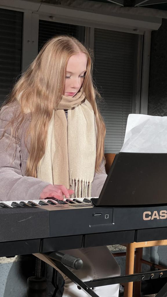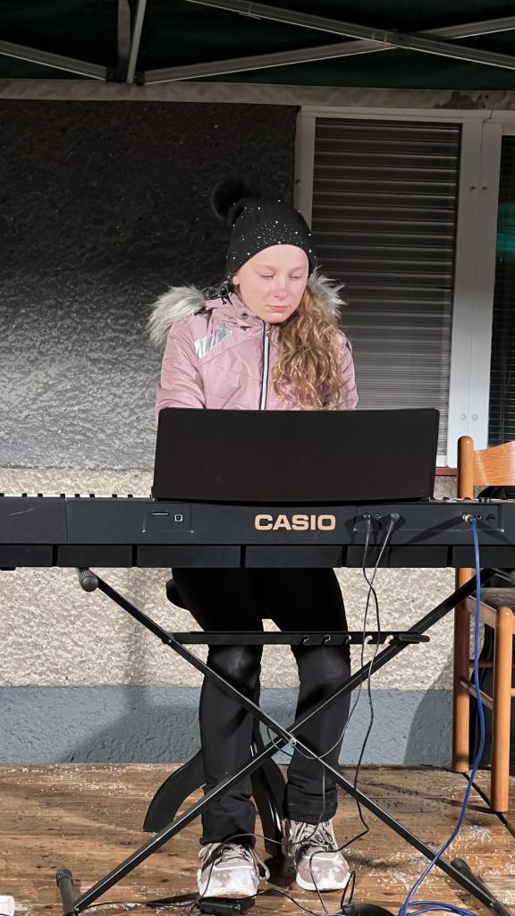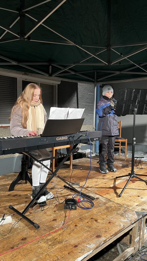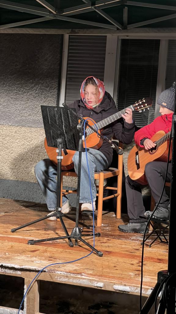 Nedělní setkání při první adventní svíčce. Vystoupili žáci ZUŠ a schola.