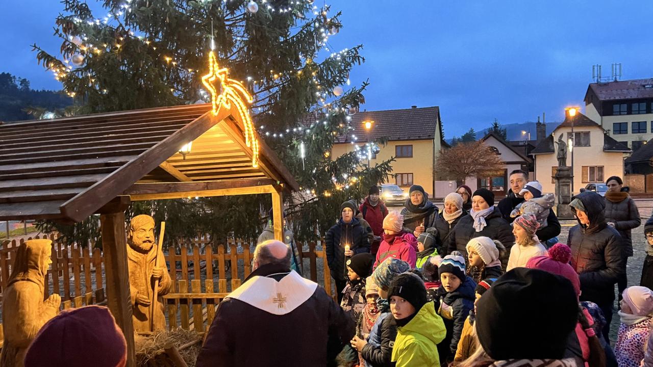 Svěcení betlému na náměstí v Brumově-Bylnici 3. prosince 2022