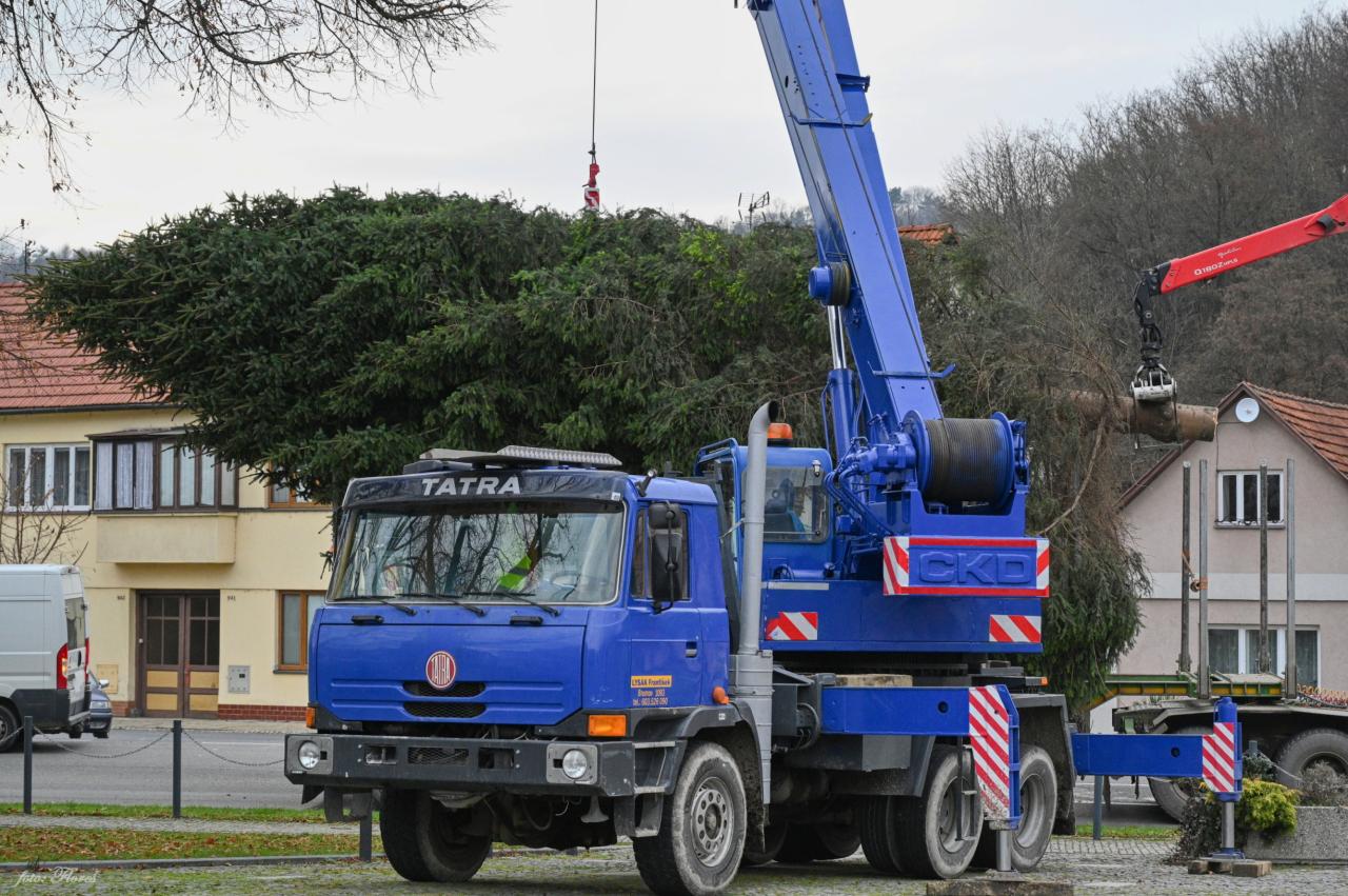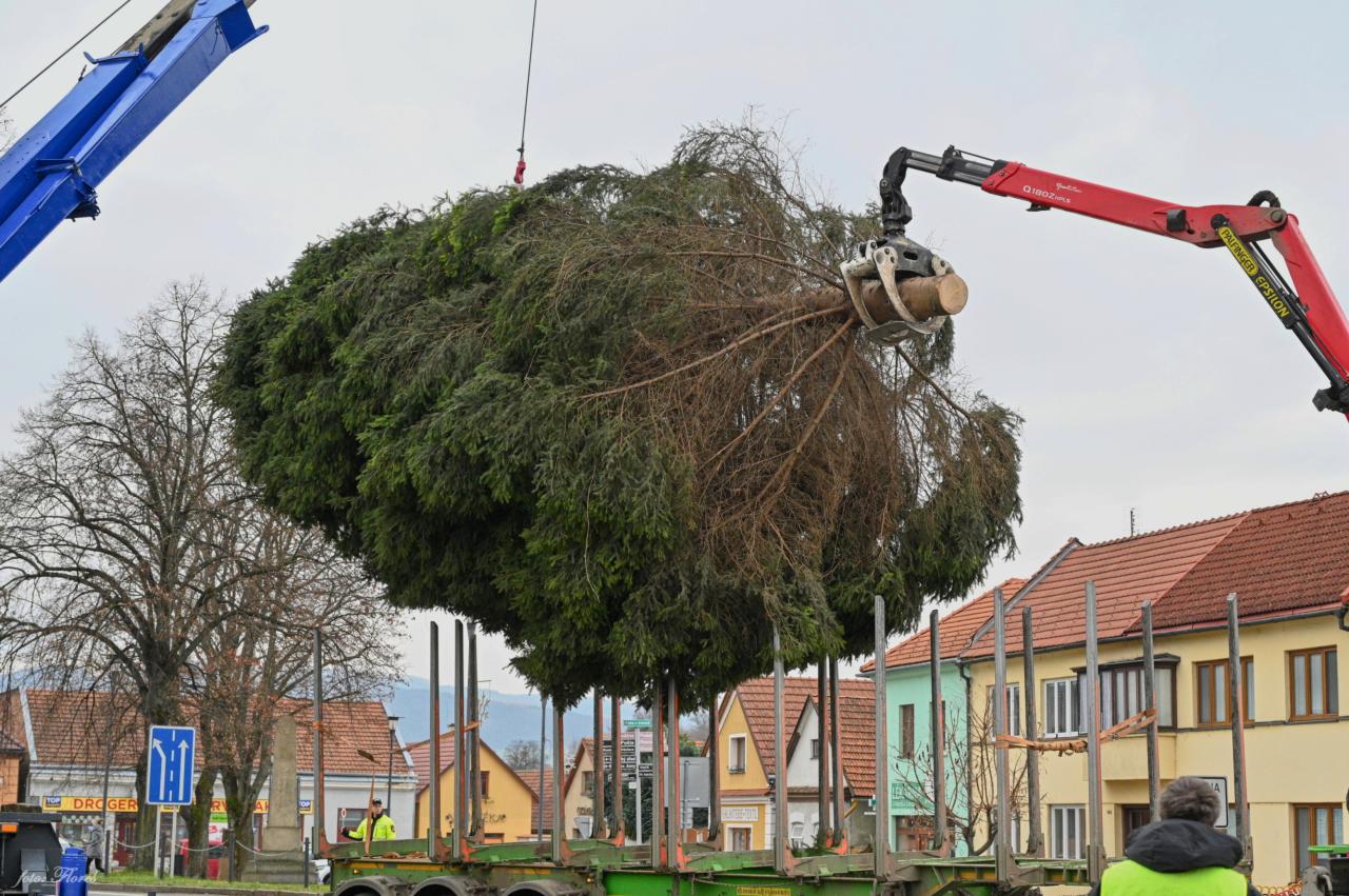 Pracovníci Služeb města a Kloboucké lesní odvedli ve čtvrtek 20.11.2025 skvělou práci. Vánoční strom v pořádku doputoval na brumovské náměstí a bude se připravovat na slavnostní rozsvícení, které se bude konat 28.11.2025.