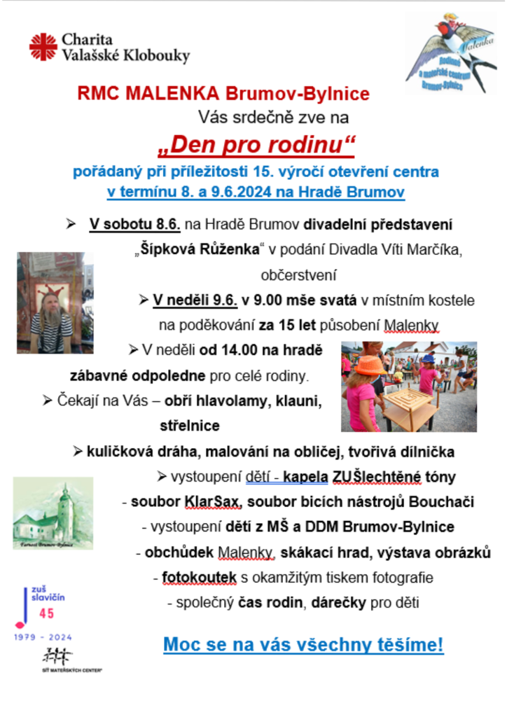 Tradiční den pro rodinu na hradě Brumov spojený s oslavou 15.výročí činnosti RMC Malenka