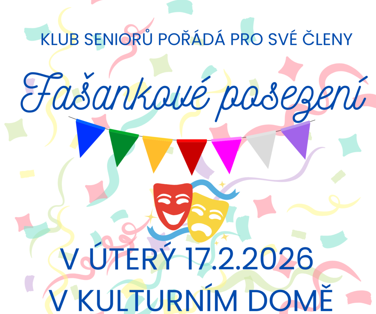 Klub seniorů zve své členy na fašanky do kulturního domu!