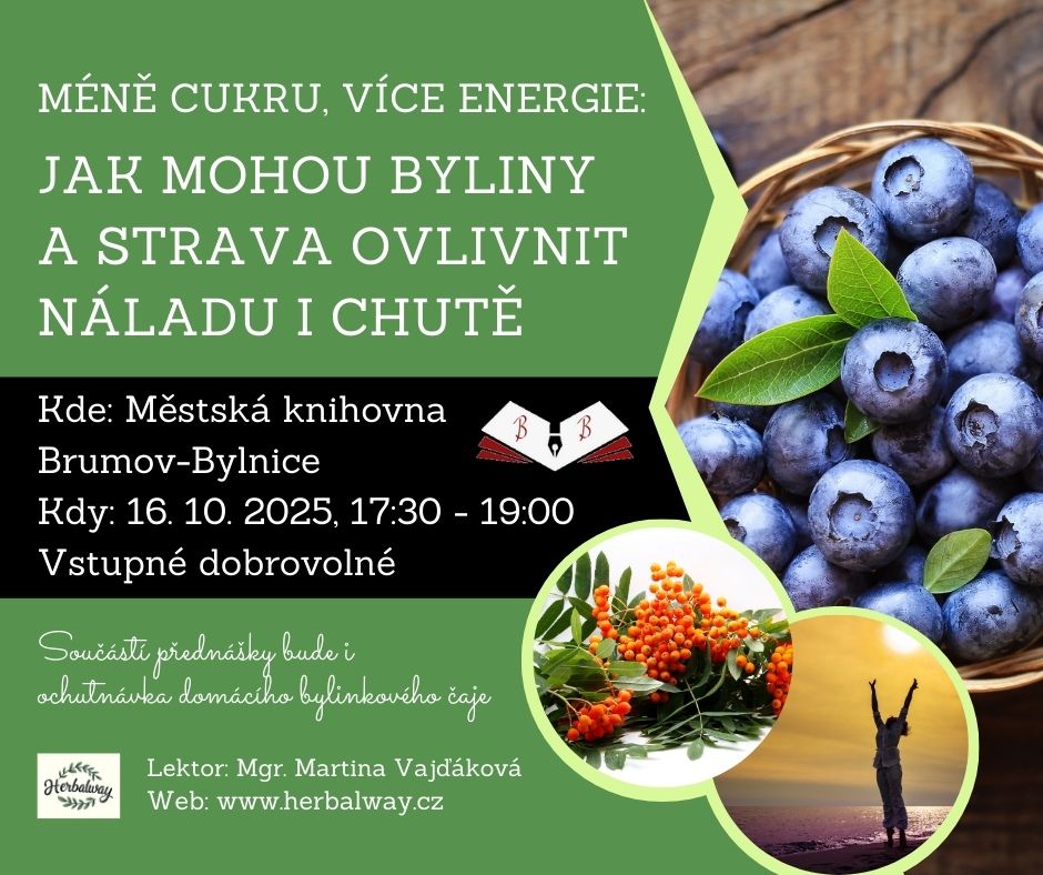 Součástí přednášky bude i inspirace na zdravé sladkosti a ochutnávka domácího bylinného čaje.