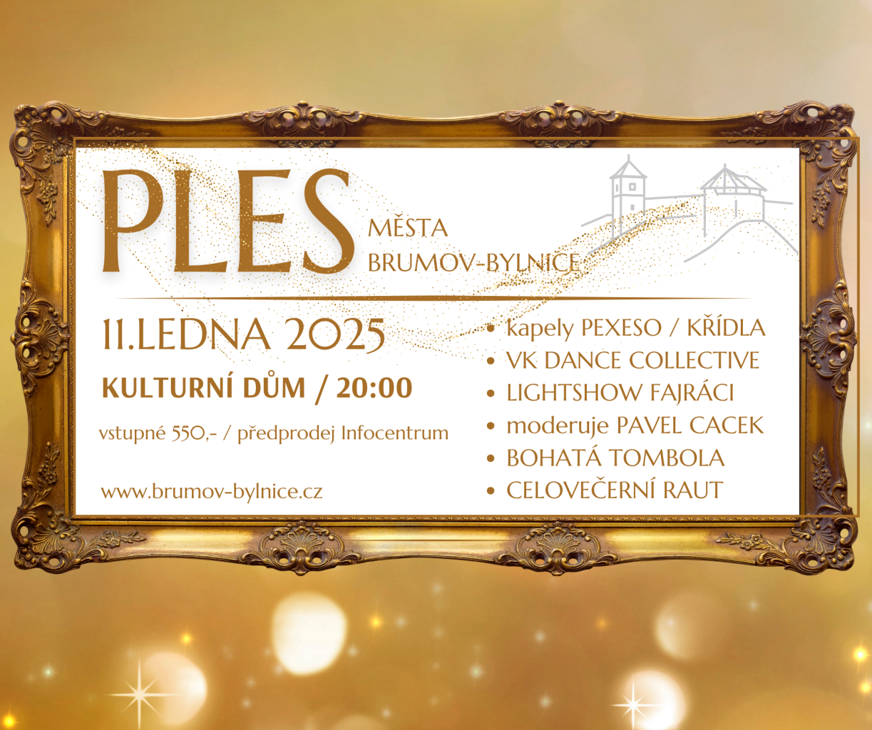 Srdečně vás zveme na 22.Ples města Brumov-Bylnice, který se uskuteční v sobotu 11. ledna 2025 od 20:00 v kulturním domě. Připravili jsme pro vás jedinečný program plný zábavy, skvělé hudby a vynikajícího občerstvení.