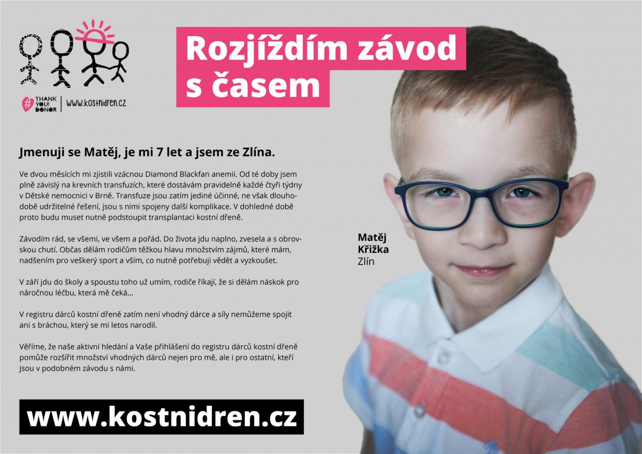 Kampaň na podporu hledání nových dárců kostní dřeně pro sedmiletého chlapce Matěje Křižku.