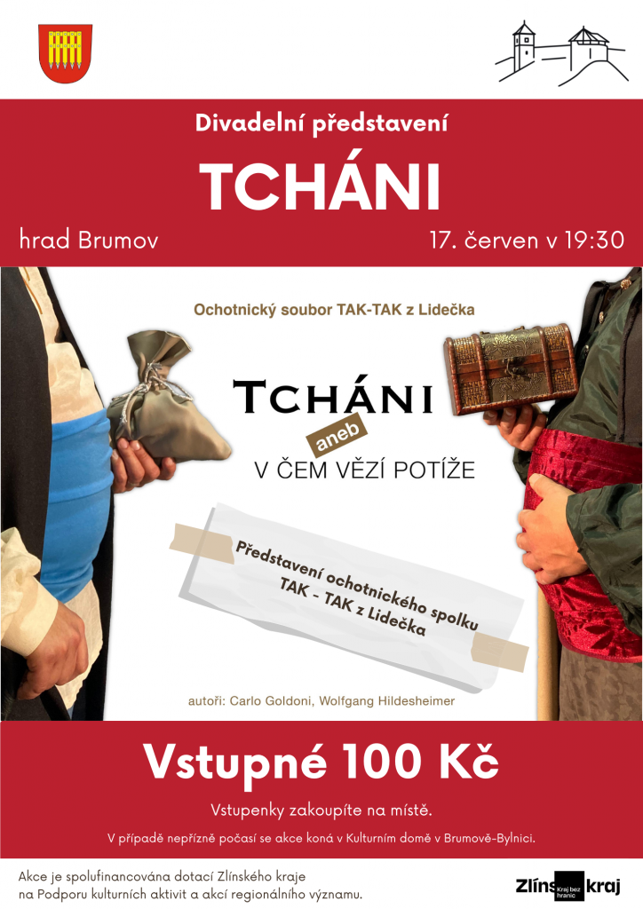 Srdečně Vás zveme na divadelní představení Tcháni, které se uskuteční v pátek 17. června 2022 v 19:30 na hradě Brumov. V