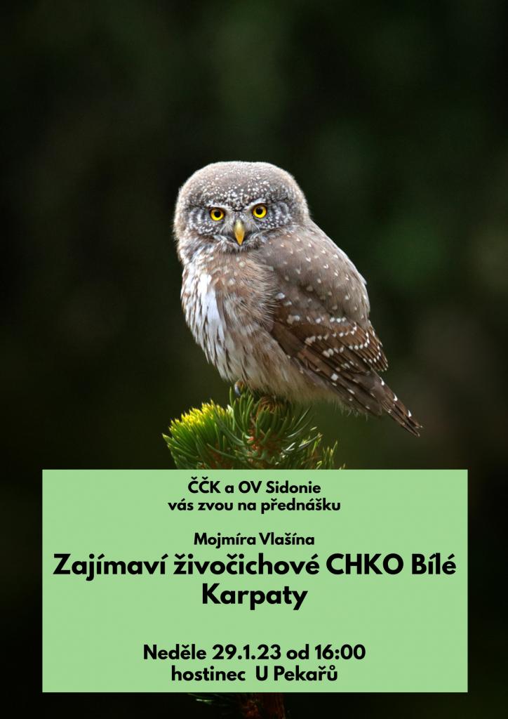 ČČK a OV Sidonie Vás zvou na přednášku Mojmíra Vlašína Zajímaví živočichové CHKO Bílé Karpaty v neděli 29. ledna 2023 od 16 hod. v hostinci U Pekařů.
