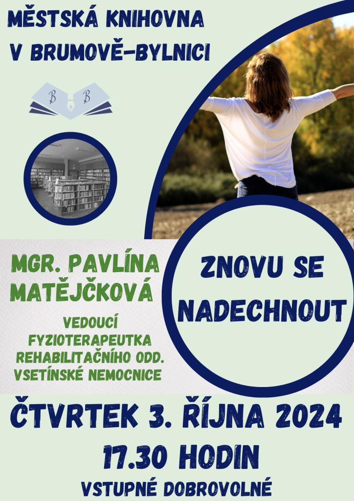 Pokračování úspěšné přednášky fyzioterapeutky Mgr. Pavlíny Matějčkové objasní, v čem spočívá správné brániční dýchání. Prakticky předvede, jak se „znovu“ nadechnout, což jde pouze v případě, že hrudník je správně připraven, s tím souvisí také vzpřímení těla.