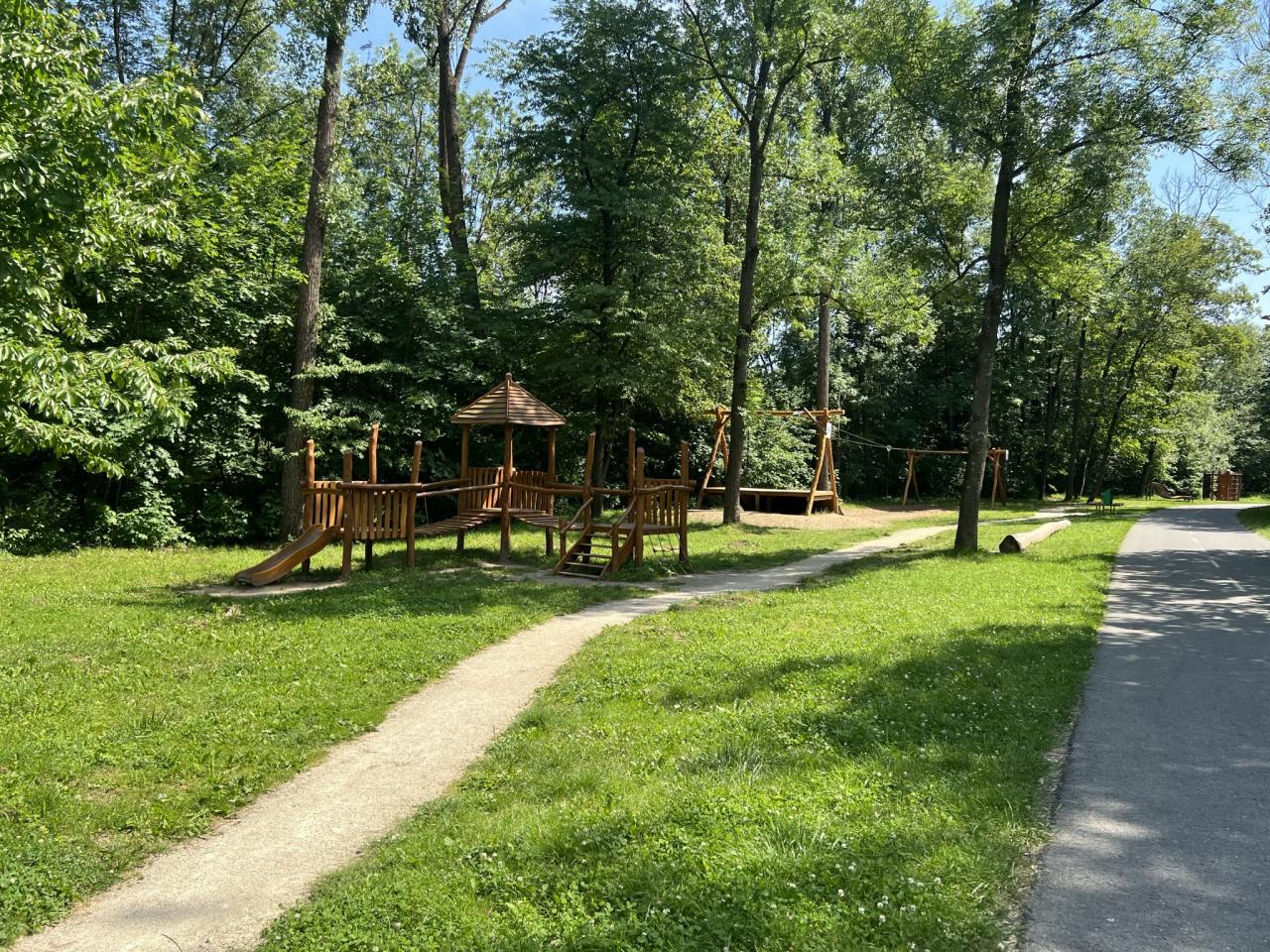 obr.: lesopark nabízí spoustu herních prvků pro děti, včetně dvojité lanové dráhy