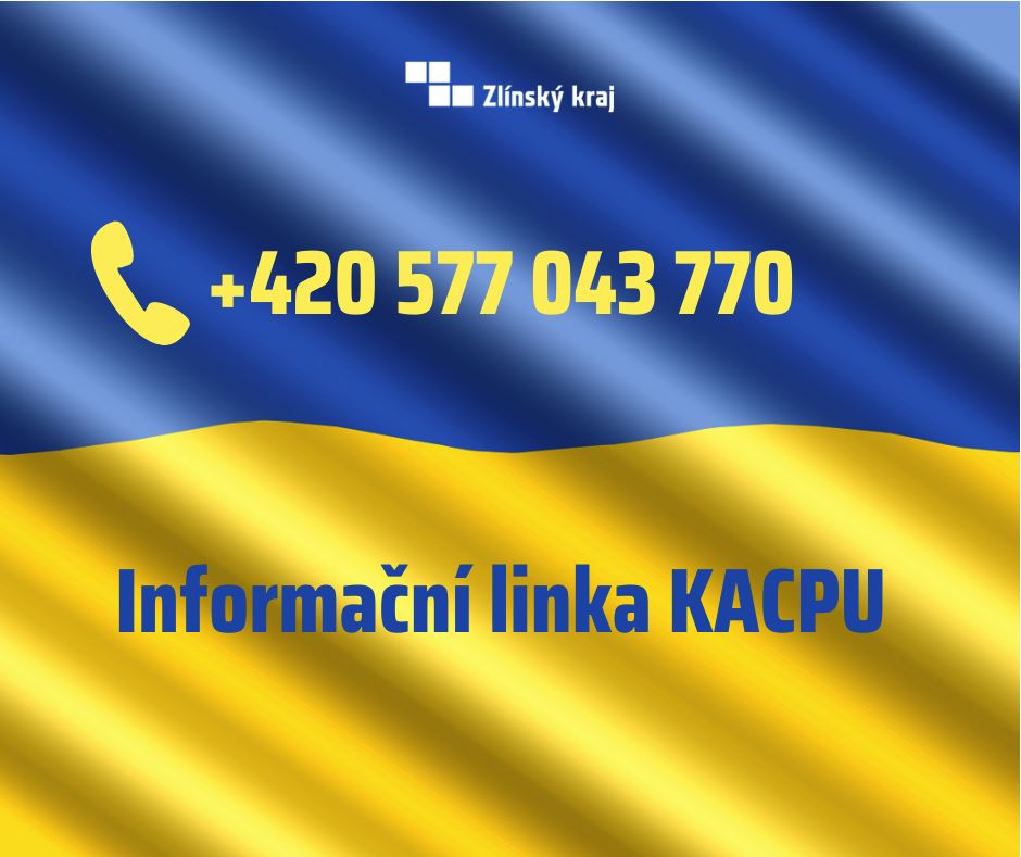 Nově Zlínský kraj zřídil také telefonní linku KACPU, kde se lidé dozví, co si musí vzít sebou pro vyřízení všech potřebných dokladů, kde si stáhnou žádost o udělení dlouhodobého víza, kde hledat ubytování či psychosociální pomoc. (více informací se dočtete v tiskové zprávě Zlínského kraje)