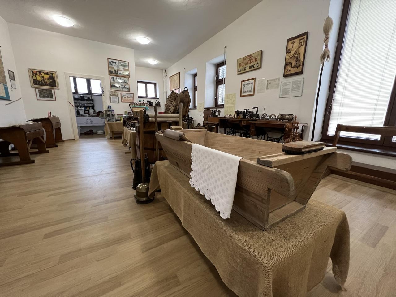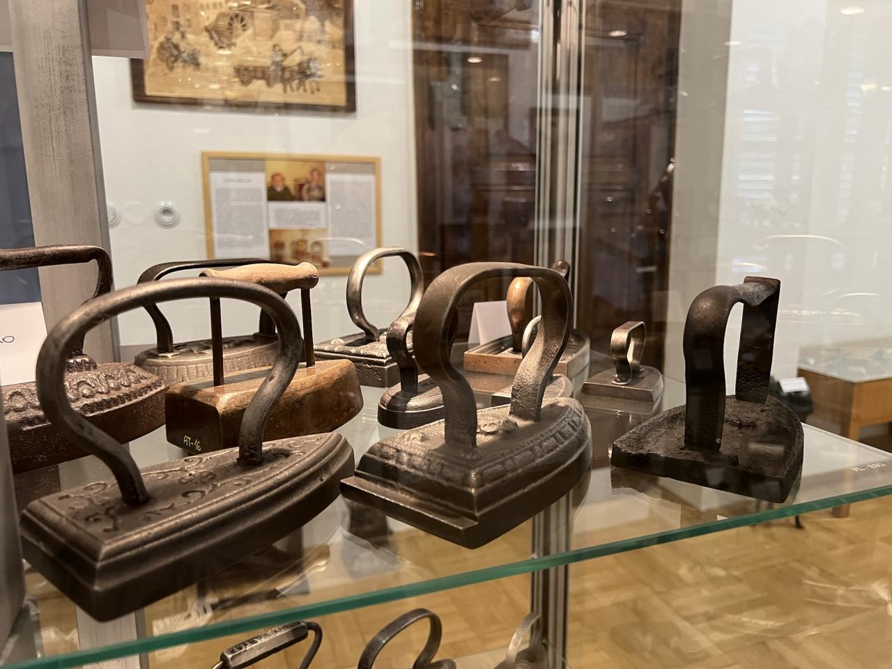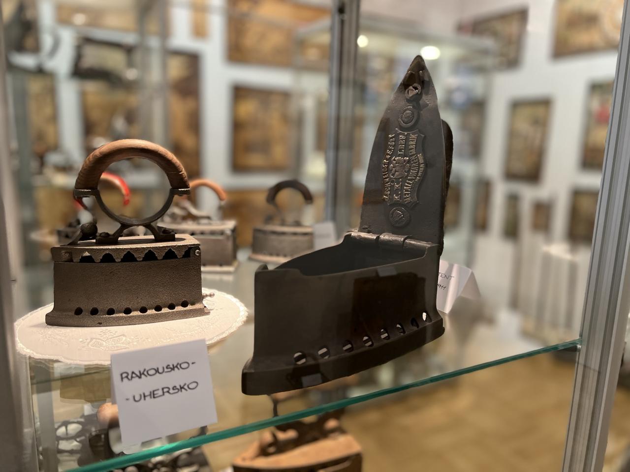 Součástí muzejní expozice je výstava historický žehliček z celého světa – od úplně prvních typů až k dnes běžným elektrickým pomocníkům v domácnosti.