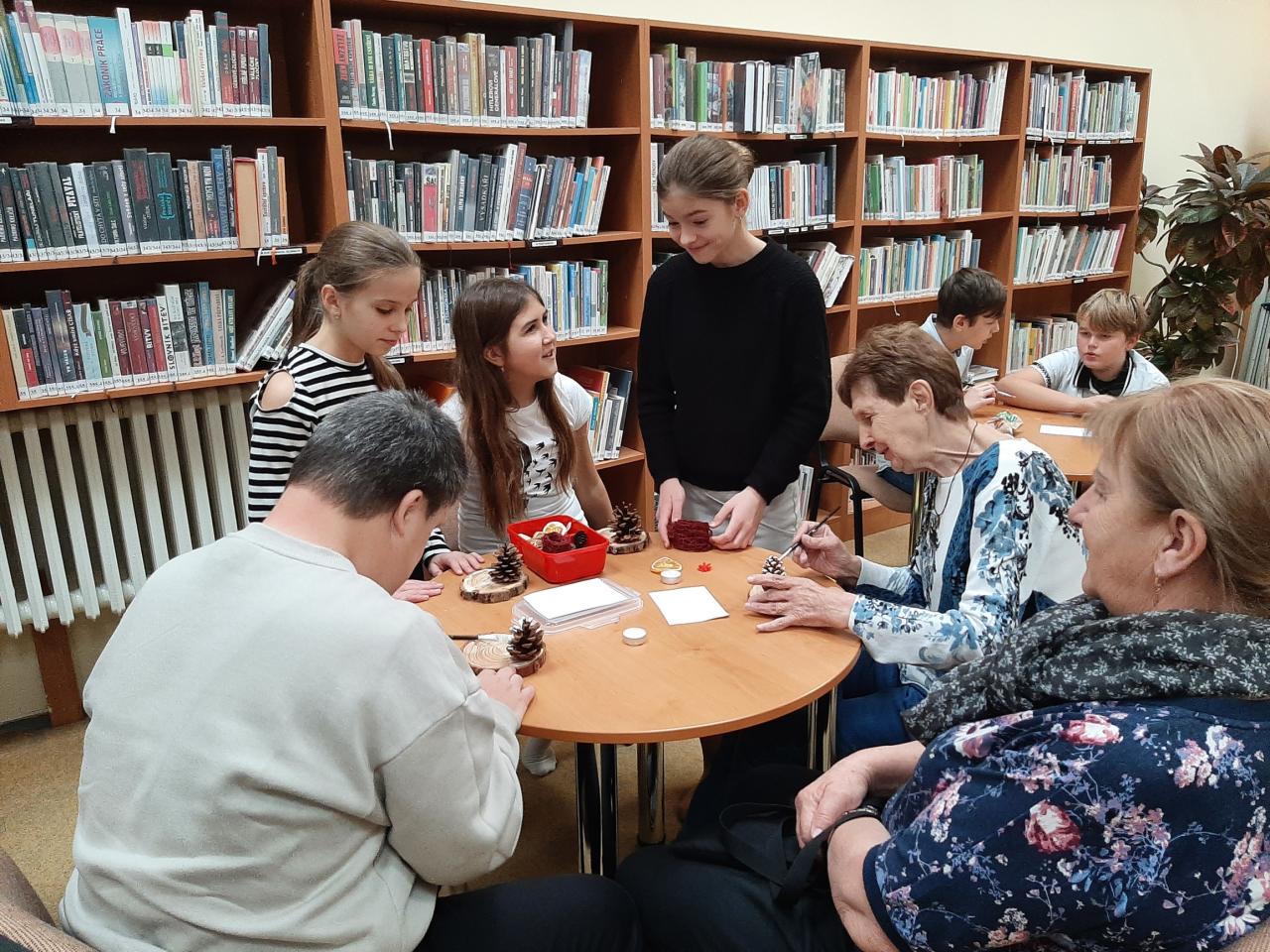 Po vystoupení následovalo adventní tvoření, které propojilo několik generací, příjemnou atmosféru doplnila vánočními písněmi hrou na harmoniku jedna z žaček.